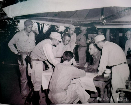 1944年11月30日,中国驻印缅战区总指挥索尔登(中将)、副总指挥郑洞国、新一军军长孙立人、新38师师长李鸿在八莫前线指挥所商讨对日军作战计划
