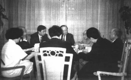 1992年6月,两岸密谈在香港香格里拉酒店举行。左二:杨斯德;左三:苏志诚;左五:汪道涵;右三:南怀瑾;右一:许鸣真。 图源:南怀瑾学术研究会