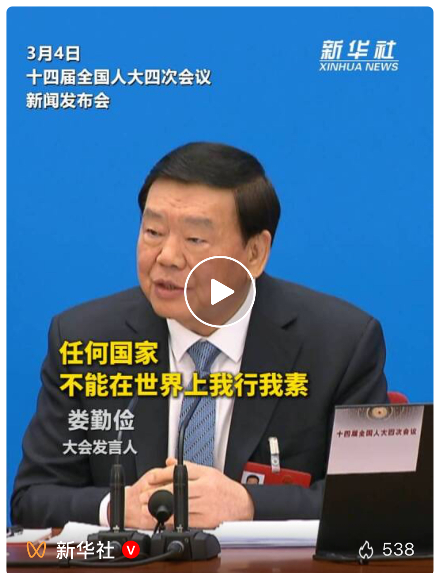大会发言人回应伊朗局势:中方呼吁立即停止军事行动!