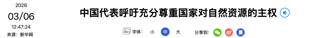 中国代表呼吁充分尊重国家对自然资源的主权