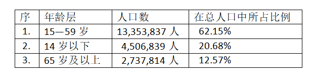 全国人口中,劳动力人口(15至59岁)的人数还占有相当高的比例。