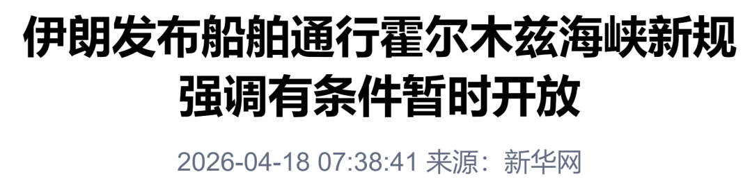 伊朗发布船舶通行霍尔木兹海峡新规,强调有条件暂时开放