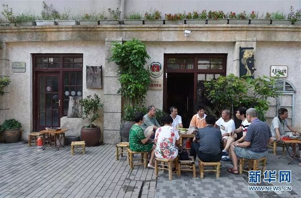 (图为市民在厦门鹭江老剧场文化公园内喝茶聊天 新华社记者 宋为伟/摄)