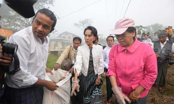 2015年12月13日,昂山素季带领民盟成员清理垃圾秀亲民