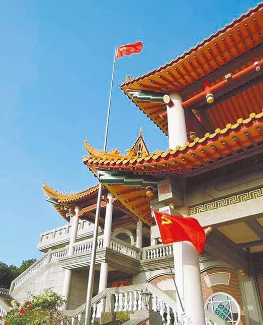 彰化八卦山麓的二水乡一段400巷36号,原本是一间庙宇旧址,魏明仁每天都会在这里升起超大幅的五星红旗和共产党党旗。