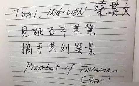 蔡上任第一个出访国家就是巴拿马。在巴拿马参观运河时,她写下"见证百年基业,携手共创荣景",署名President of Taiwan (ROC)[台湾(中国民国)总统],引发一时轰动。如今,百年基业毁在她的手里,携手共创成了明日黄花。