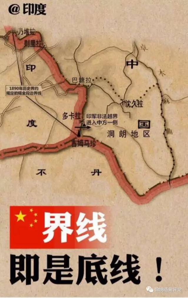 尽管历史和现实的对比是存在差异的,但是仍然可以表明目前局势的危险程度。中国认为1890年条约的白纸黑字不仅支持其在洞朗高原的军事存在,而且赋予其将公路向南延伸至支莫挚山的权利。印度则相信边界线的起点在北面的巴塘拉,所以印军越过边界线进入洞朗高原与中国对峙,这是根据条约中的划界原则以及后来英国出版的地图。