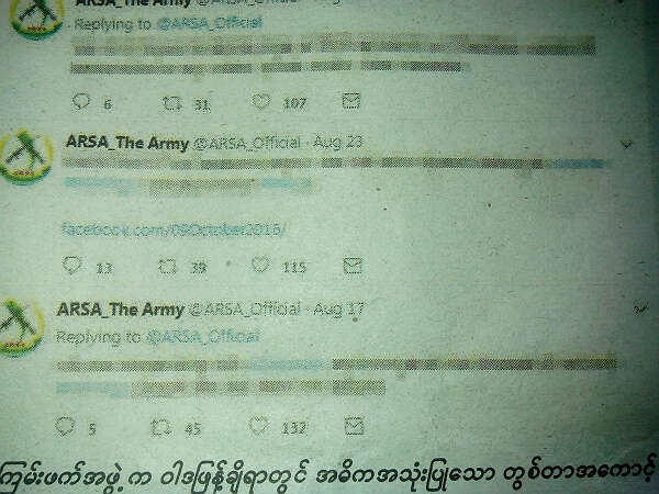 目前据统计,恐怖组织ARSA的Twitter的Follower有4863人,而国务资政部的Follower为4696人,SG Min Aung Hlaing只有2808人,若开邦事务委员会为4539人。比ARSA拥有更多的Follower是总统府发言人U Zaw Htay的Account。当ARSA用英、缅两种语言在Twitter上对政府及军队进行造谣攻击污蔑时,U Zaw Htay援引国务资政部发表的新闻报导加以反驳。