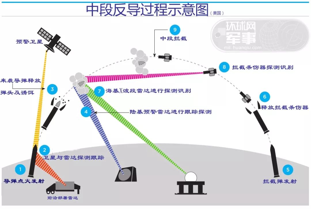 在中段时,导弹已经飞出大气层,这时进行拦截,就能大大降低导弹带来的杀伤性。虽然在中段时,导弹自身会进行分离,分离出去的部分会以“假目标”的形式干扰拦截,但是相比其他两种,可行性还是要高得多。