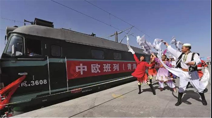 2017年8月20日,青海省首次发往俄罗斯彼尔姆市的中欧班列从青藏铁路公司格尔木车站驶出。班列行程约6360公里,预计用时10天左右,运载的货物为青海柴达木盆地循环经济示范区生产的盐湖产品。图/新华