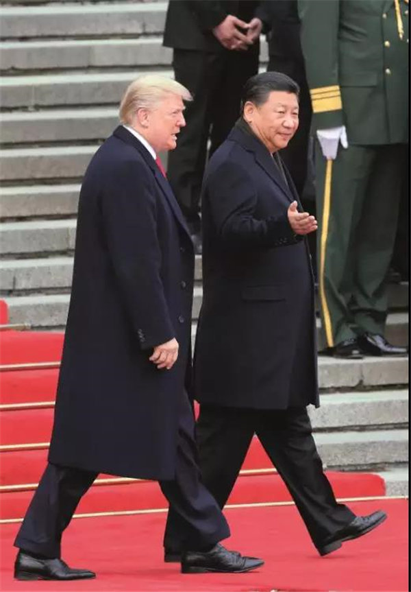2017年11月9日,国家主席习近平在人民大会堂东门外广场举行欢迎仪式,欢迎美利坚合众国总统唐纳德·特朗普对中国进行国事访问。图/中新