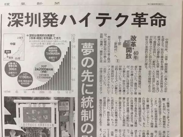 2018年2月15日日本《读卖新闻》关于深圳高科技革命的报道