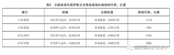 俄罗斯北方海航道:绕过印度洋-地中海连接亚洲和欧洲的便捷水道,缩短航程体现其战略性交通价值。北极航道作为横跨欧、亚、北美洲之间的最短航道——欧洲至亚洲之间的海运距离由20917公里缩短至12711公里,将大为减少航运和陆运的人力、物力和财力(见表2)。