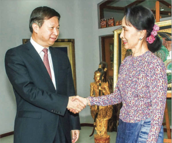4月24-25日,中国共产党中央对外联络部部长宋涛一行抵达内比都对缅访问,分别与国务资政部部长吴觉丁瑞、国务资政昂山素季、总统吴温敏、总司令敏昂莱、民盟第二副主席佐敏貌等政要会面。本次访缅,主要就缅甸民族和解、国内和平、中缅双边友谊与合作、领导人互访、构建一带一路及若开地区和平稳定发展等问题进行了讨论。