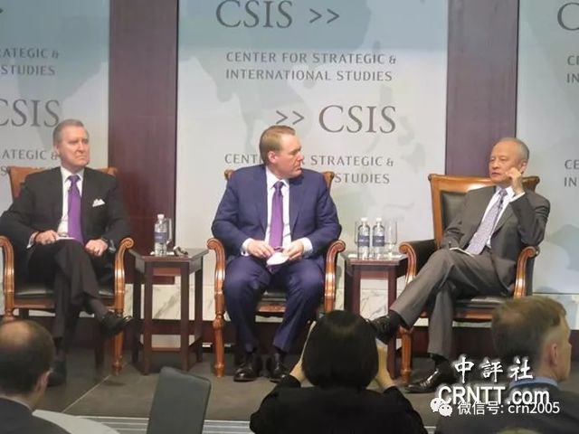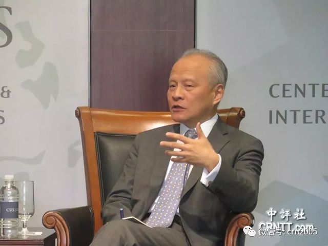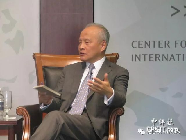 5月11日中午,在华府智库战略与国际研究中心(CSIS),中国驻美大使崔天凯和美国前国防部长科恩(Williams Cohen),受邀与CSIS费和中国研究项目主任张克斯(Christopher Johnson)就“中美关系40年”进行对谈。
