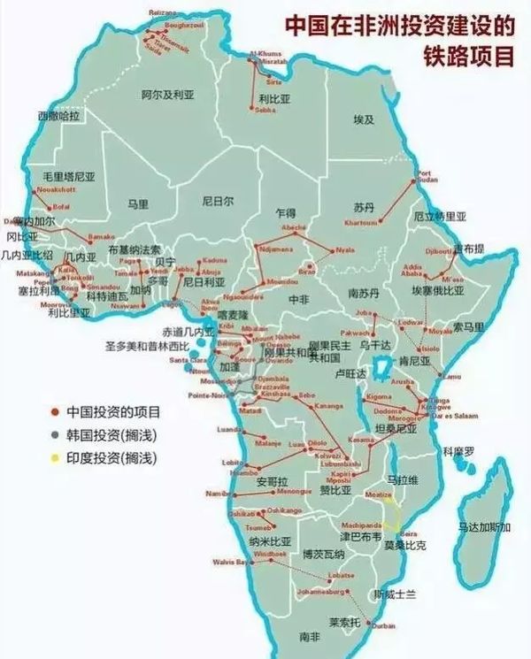 在非洲,中国已经修建了坦赞铁路、亚吉铁路、蒙内铁路等数十条铁路。尤其是后面两条铁路,简直是援非战略的神来之笔。众所周知,运输线意味着货物集散。当亚吉和蒙内铁路修建好后,我们立马沿着铁路线帮非洲搞工业区。这一招有三个优势:第一,合理利用资源,增加铁路运输量;第二,解决当地就业问题,并为政府带来税收;第三,极大增强了当地政府和人民对中国的依赖度。