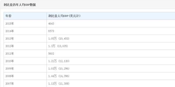 利比亚人均GDP数据