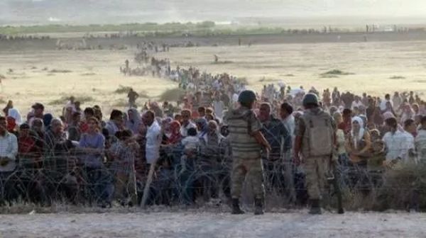 排队过边境的叙利亚难民