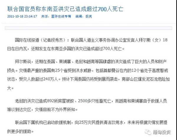 最近几天朋友圈里的社会团体,又在紧急募捐、救助。每年我也都积极的参与,今年因为老挝溃坝事件,突然引起我这段反思:我们这样做,是不是在“毒害”缅甸人民。虽然因灾死亡,是洪水造成的,然而可以通过兴修水利来遏制天灾,不用说全球各发达国家过去几百年来的兴修水利的历史,也不用说千年以前中国兴修水利,如成都都江堰等历史经典案例。就说近在眼前的老挝,我查询了一下2017年以前的老挝水灾死亡人数,最近几年都没有,一直上溯到2011年,联合国官员有关于东南亚因洪灾,死亡人数超700人的发言。其中,虽然没有直接提到老挝的死亡人数,但从其语句“老挝的洪灾已造成892所房屋被毁,2500多只牲畜死亡”来看,从洪灾发生在泰国、柬埔寨、老挝,和越南等国来均分死亡人数的话,每个国家应该都在140人以上,这里我是把缅甸也算进去了。当然我很奇怪报道里面为什么不提缅甸(这条新闻恰好在“缅甸密松”大坝项目被叫停后不到一个月,所以“故意”不提及缅甸?),因为东盟十国,就以上五国是在湄公河流域,而另外五个国家都远离这个区域,不会受到洪灾的直接影响。