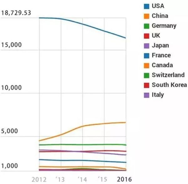 现在美国的自然指数大约是中国的2倍,中国也大约是德国的2倍。