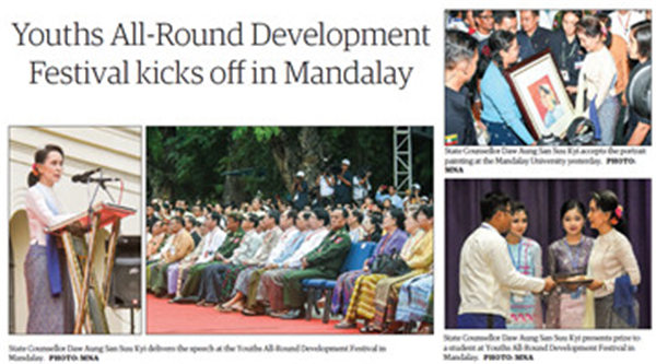 曼德勒省省长佐敏貌参与并在讲话中表示:本次节日举办的较为顺利,我们所倡导的青年人“五育”——身体、智力、道德、社会、经济,将通过其优秀的表现在未来建立更好的人类社会。国务资政说,每个人都有责任确保青年人的全面发展,这也是为什么政府、父母和其他相关的人士,都应该在此方向上合作。