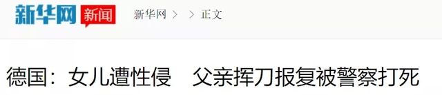 如今的德国,对待难民的态度疯狂到了什么地步呢?周小平可以给大家举个例子。有一伙难民盯上了一个德国本地年仅8岁的小女孩,于是趁她出来玩就用糖果将其引诱至一个空屋内强奸,造成女孩大出血。女孩的惨叫声惊动了附近正在焦急寻找她的父亲,父亲一脚踢开房门发现惨状气得发抖,和难民厮打起来。但是难民越聚越多,女孩父亲不敌,只好操起一把菜刀要与之拼命。正在这时候,警察赶到现场,掏出手枪将受害女孩的父亲当场击毙,很好地保护了难民强奸犯的安全。随后犯案难民被带走,警察被认定无罪。