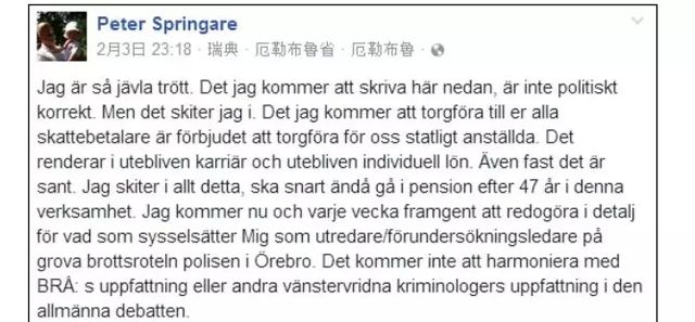 瑞典警察发文表示惹不起难民移民,惹了他们自己会丢工作。(编者按:不过要是惹了中国人嘛,没准还会升职受奖~)