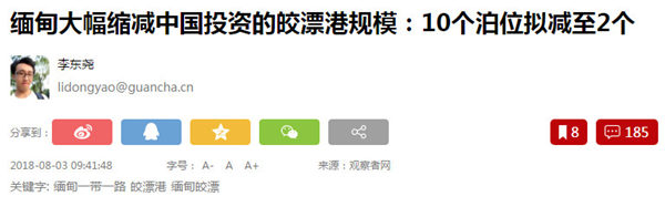 当时戎评提到,美国人直接从源头动手,推动缅甸内部亲美势力以行政手段干涉皎漂项目。3个月前缅甸财长也煞有介事地称“原计划73亿美元的投资规模将削减至13亿美元”。