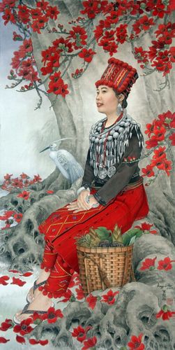 (上图为缅甸画家王根绍Wang Kyaw Kyaw名画:克钦-景颇姑娘)