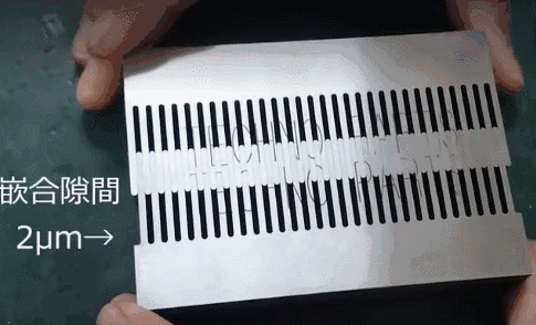 然而,视频其实根本不足以完全体现其技术之精湛,要知道,其金属切割后的嵌合隙间仅仅为2微米,细菌的直径也不过是在0.5-5微米之间,这和细菌是是同一数量级的。