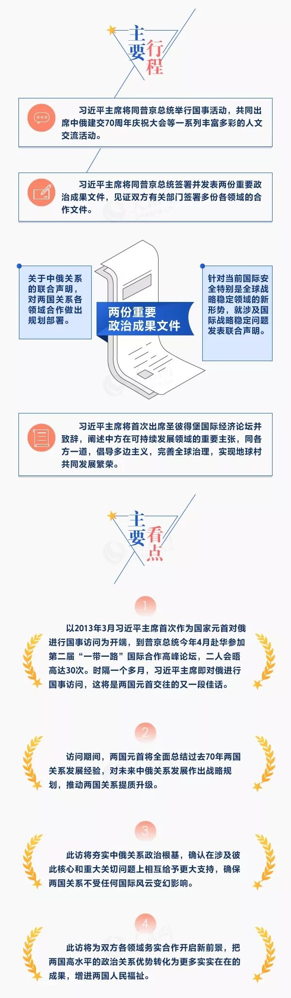 应俄罗斯总统普京邀请,中国国家主席习近平于6月5日至7日对俄罗斯进行国事访问并出席第二十三届圣彼得堡国际经济论坛。此次出访是习近平主席连任国家主席后对俄罗斯进行的首次国事访问。
