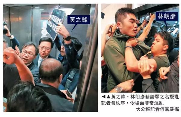李家超举行记者会,黄之锋、林朗彦故意扰乱秩序,令场面非常混乱