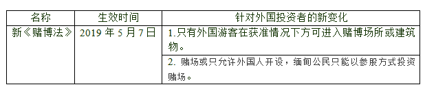 表3 新《缅甸赌博法》中针对外国投资者的新变化