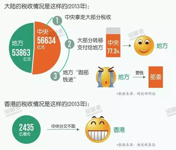 第一,中国地方政府的税收一半以上要交给中央政府,但是香港的税收,中央政府分文不取——在香港被英国殖民的时候,会给你这等好事?
