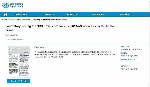 德国团队的研究已于1月17日在世界卫生组织官网公布