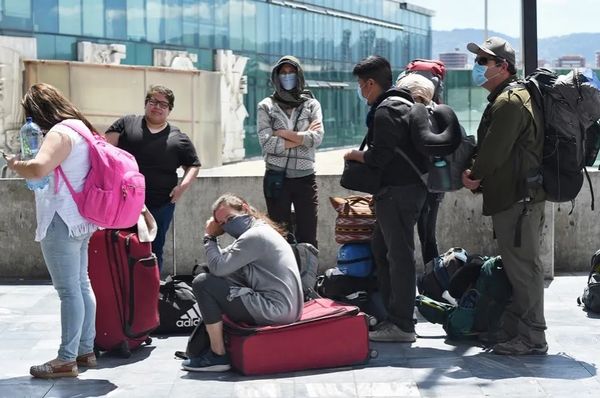 3月23日,游客们在危地马拉等美国大使馆包机回国。