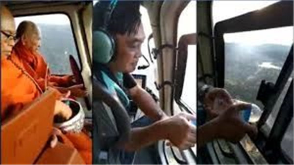 而笃信佛祖的信众们,也很高兴看到高僧乘坐直升机诵经大作、播撒“圣水”,以保护他们的人民免受新冠病毒的感染▽。广大的僧院场所,也被大法师们大方腾出,用作人员隔离点。