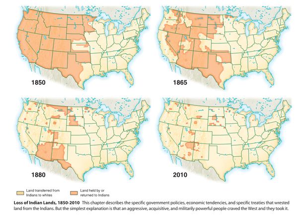 美国政府及军队通过大肆驱逐、杀戮印第安人,侵占印第安人几百万平方公里土地,攫取无数自然资源的同时,对印第安人进行了一系列“文明开化运动”,从文化上消灭和改造印第安人。