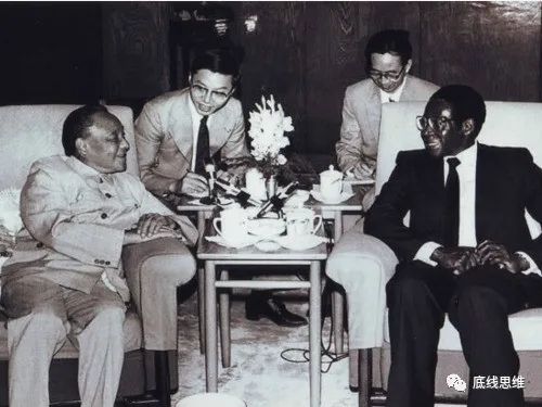 邓小平在人民大会堂福建厅会见津巴布韦总理罗伯特·穆加贝