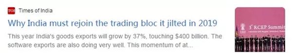 它旗帜鲜明地提出,“印度必须加入2019年被它抛弃的RCEP”。