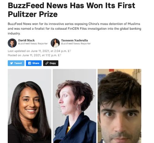 其实,这已经不是“普利策”奖第一次这么做了。去年,美国Buzzfeed新闻网就同样因为一篇造谣抹黑中国新疆的“报道”而首次拿到这一奖项。