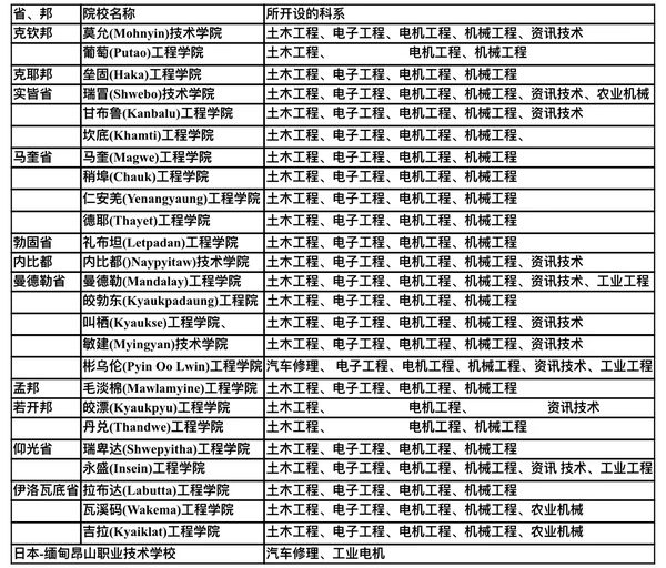 我回答:“最主要是增加一所学校了,那就是日本缅甸昂山职业技术学校,过去这所学校似乎是独立存在,现在也被并入这工程院校系列了。”