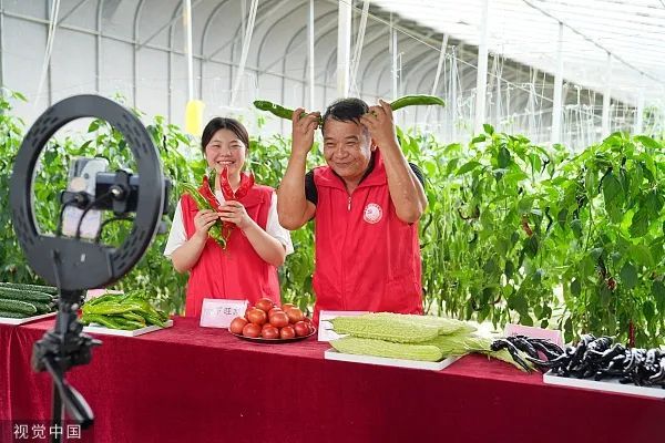 江西萍乡:党员志愿者直播带货 带动农民增收致富。图源:视觉中国