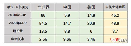 下图是10年来全世界的GDP,拿走中美这两个火车头后,其他地区的增长非常可怜: