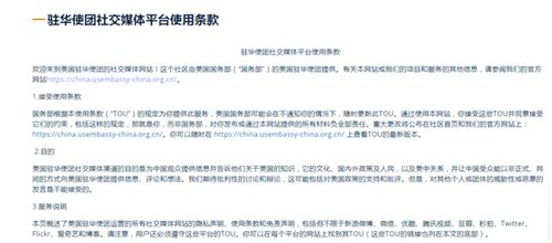 美国驻华使团有一份公开的“社交媒体平台使用条款”,其中介绍,美国驻华使团社交媒体渠道的目的是“为中国观众提供信息并告诉他们关于美国的知识,它的文化、国内外政策及人民,以及美中关系,并让中国受众能以非正式、民间的方式向美国驻华使团提供信息、评论和想法”。