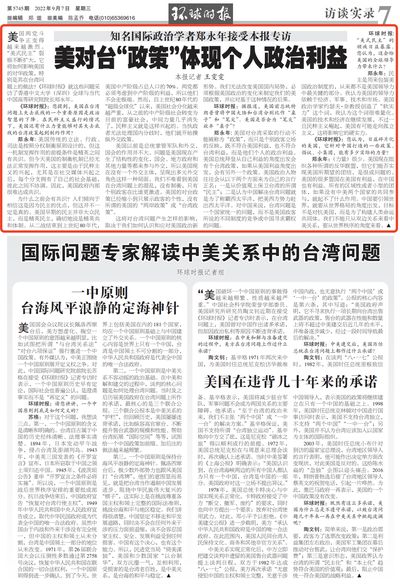 郑永年接受《环球时报》专访:美对台“政策”体现个人政治利益