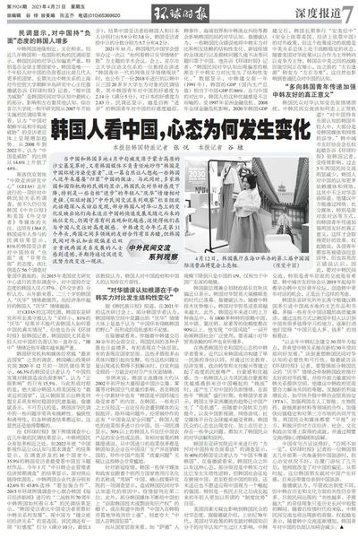 “对华错误认知根源在于中韩实力对比发生结构性变化”