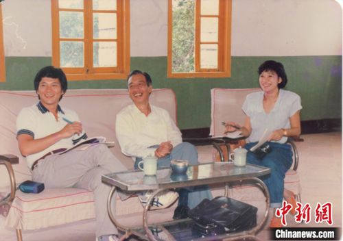 1987年台湾自立晚报记者李永得、徐璐前来采访陈孔立。受访者供图