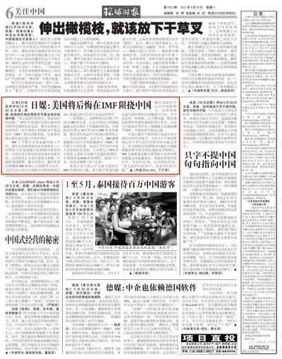 日本《日经亚洲评论》5月26日文章,原题:美国将后悔在国际货币基金组织阻挠中国 “美元是我们的货币,却是你们的问题,”1971年美国时任财长康纳利对欧洲各国财长如是说。事实证明此言有预见性。如今美国正将国际货币基金组织(IMF)推向动荡角落,而美现任财长耶伦却企图让中国负责任。