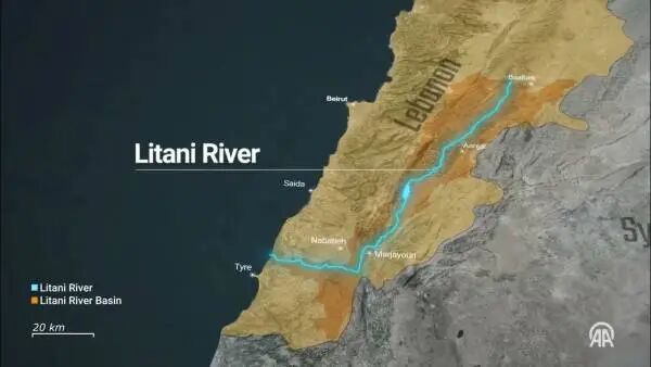 据介绍,利塔尼河位于黎巴嫩南部,距离黎以临时边界只有约30公里的距离。利塔尼河发源于黎巴嫩东部贝卡谷地,从南部城市提尔以北流入地中海,全长约140公里,是黎巴嫩境内第一大河,也是黎巴嫩南部和贝卡谷地灌溉和饮用水的主要来源。